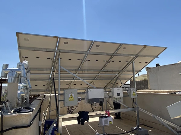 این نیروگاه از نوع پشت بامی با سازه دو ردیفه افرا و پایه های ترکیبی شامل وزنی و همبند با اسکلت ساختمان در راستای قرارداد خرید تضمینی برق و تامین برق اضطرای در پشت بام واحد تجاری در نیشابور احداث شده است. پنل ها از برند چینی Longi و از نوع Half-Cut-Cell و مولتی باسبار با توان 455 وات است. همچنین در این پروژه از دو دستگاه اینورتر هایبرید و متصل به شبکه هرکدام به ظرفیت 5 کیلووات از برند Growatt ساخت کشور چین استفاده شده است.